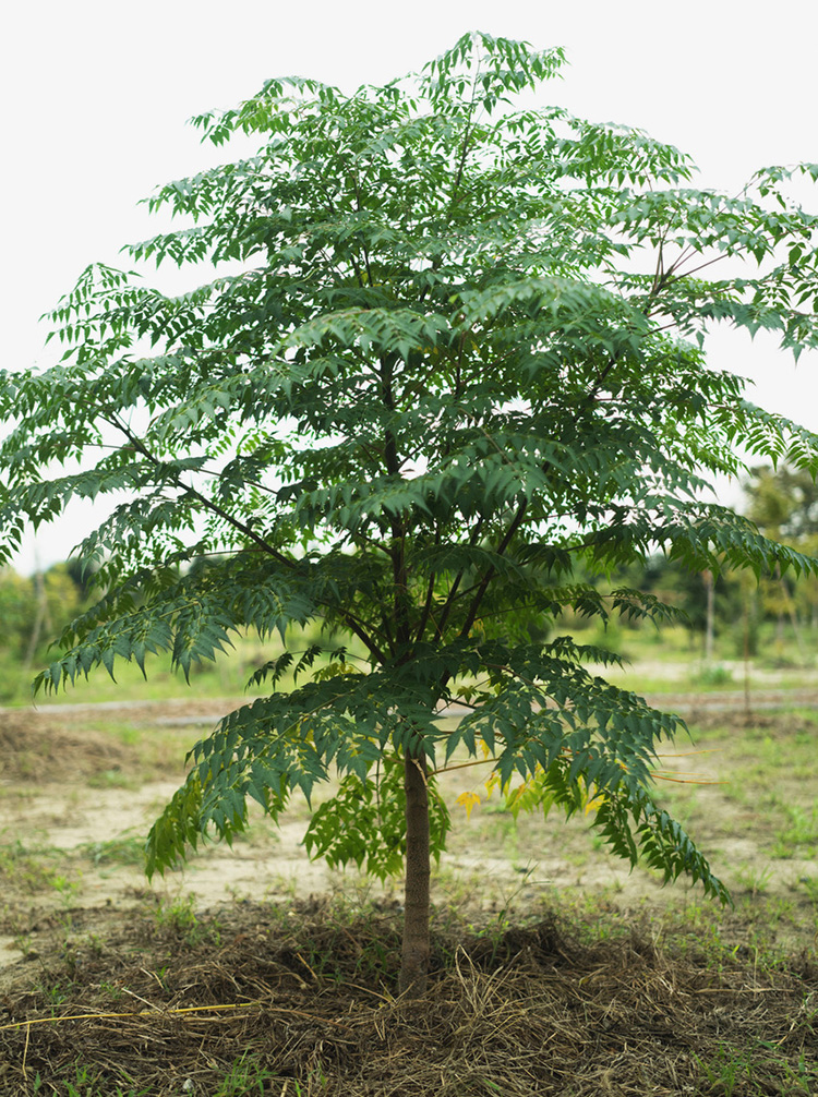 「ゼロカーボンの森エリア」では工場内のゼロカーボンに貢献するべく、日本在来種であるセンダンを植林することを提案しました。センダンはスギやヒノキに比べて最大約8倍のCO2吸収力を持ち、生育も早い特性を持っていることを踏まえ、JFEスチールの環境目標達成への強いメッセージを示す樹木として選定しました。