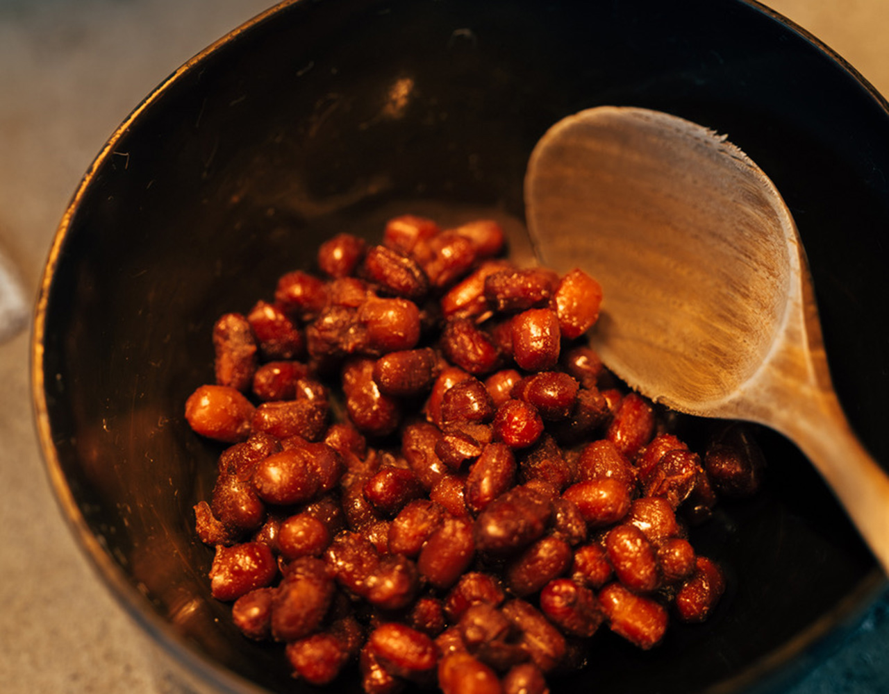 小豆は一晩水で戻し、コトコト、コトコトと弱火で炊いていく。