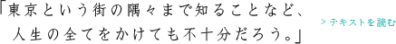 東京という街の隅々まで知ることなど、人生の全てをかけても不十分だろう。