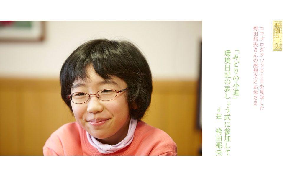 さて、「エコプロダクツ」展会場では最新技術の展示のみならず、連日さまざまなイベントプログラムと共に日頃の環境活動への表彰もしています。そのひとつに財団法人グリーンクロスジャパンが主催する「みどりの小道」環境日記コンテストがあります。 http://www.midorinokomichi.net/