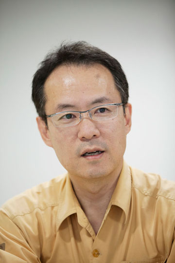 田渕作業所長以下、私を含め5人の副所長が日々の現場を支えています。鉄骨を組んでいる頃は500名、現在は内装や設備工事も始まりましたので800名近くの専門スタッフが現場作業に従事しています。工事事務所の現場作業には、まず基本的な設計の図面に基づき、実際に施工するために資材や部材を製作するための図面を起こす生産設計作業、次に作業工程表の立案、並びに工程表を実現し品質を満足させるための資材や人員の調達・手配に関する管理、そして現場作業の監督と、詳細かつ多岐にわたる作業があります。これを所長の指揮の下、分担、連携し、現場を廻しています。