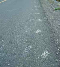イエローストーン公園の中を通る道路に点々と残された狼の足跡