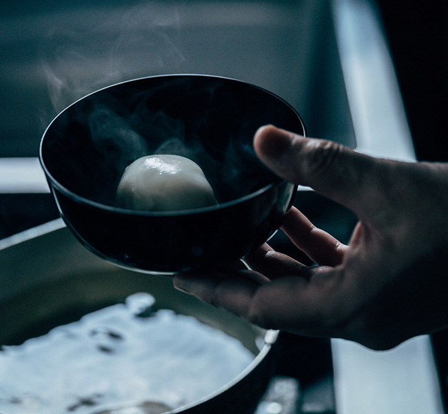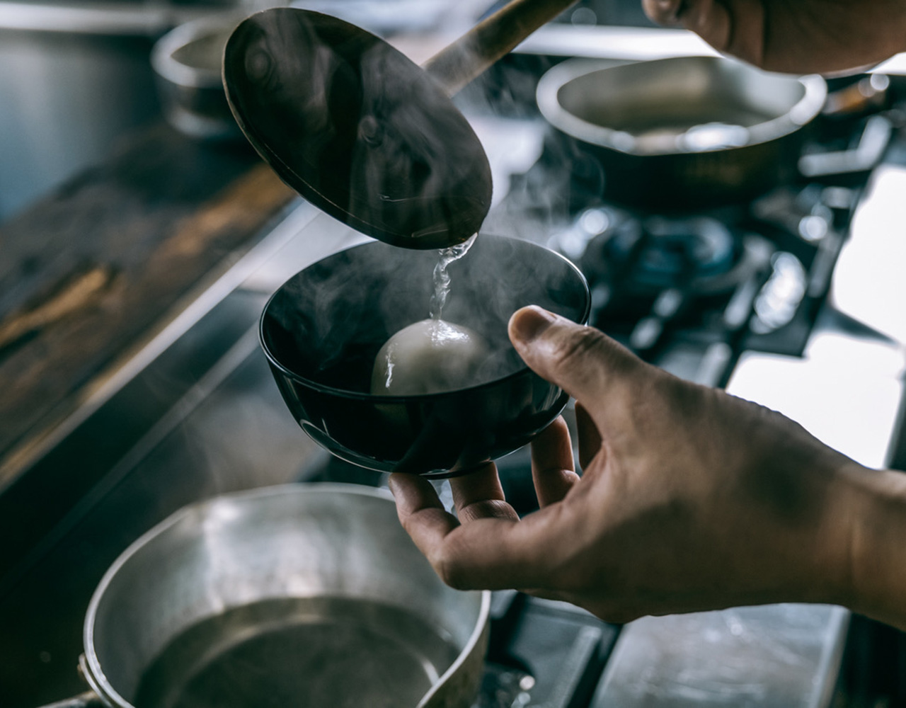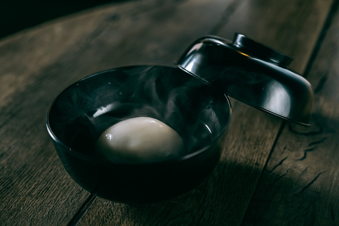 そして、お椀にはるお水も天然水を使い、このお水にも天然塩を入れ、水の香りを引き出す。口に入れた時の含み香は、日々の疲れた身体を癒してくれる。黒のお椀の中に映える真っ白な「鶏卵」。フワッと立ち昇る白い湯気。本当に美しいと思う。